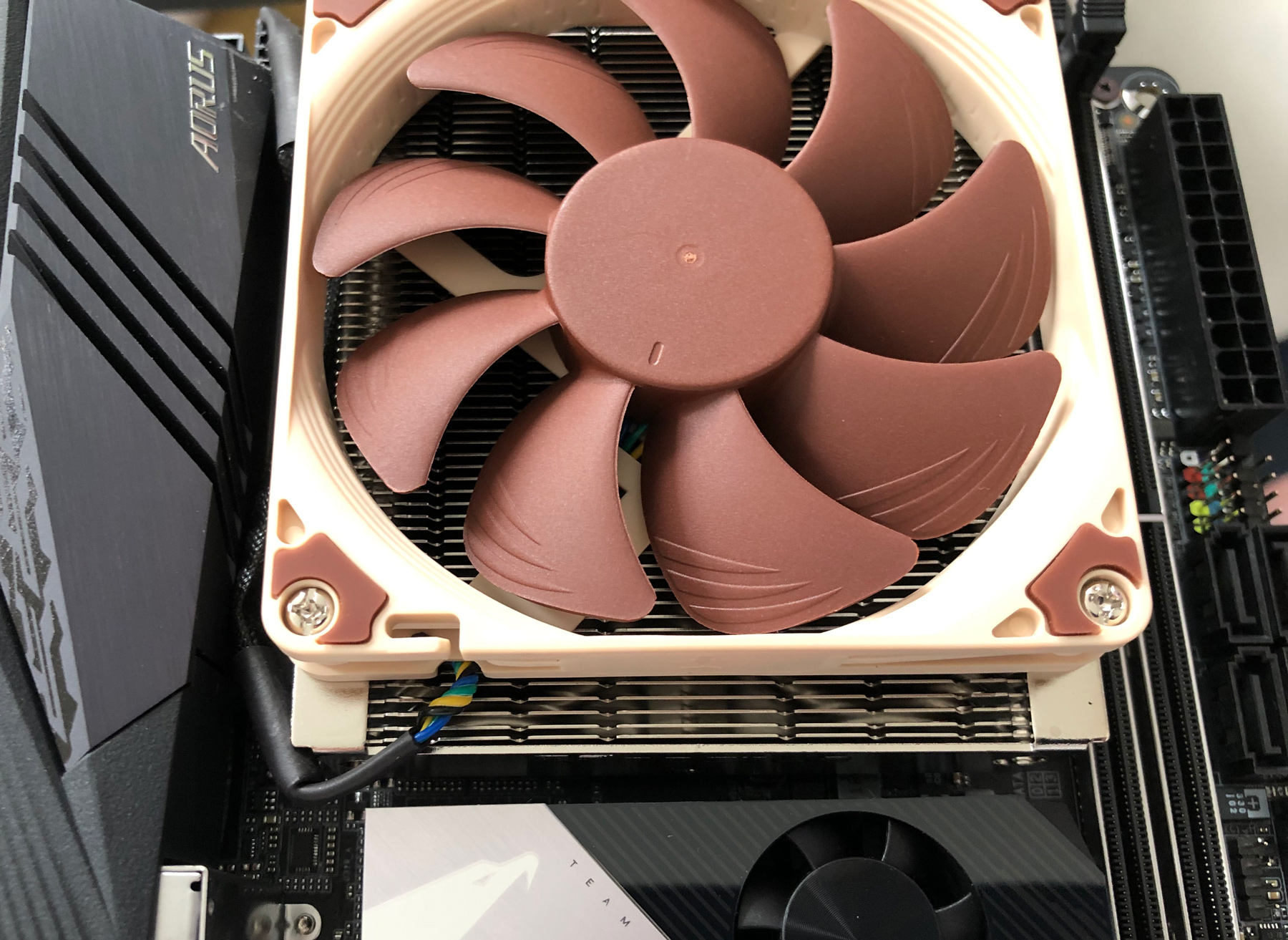でも、少しでも冷やせるように風量のより多い92mm、25mm厚のファンNF-A9-PWMに取り替えてもぎりぎり48mmの高さでケースに収まります。
