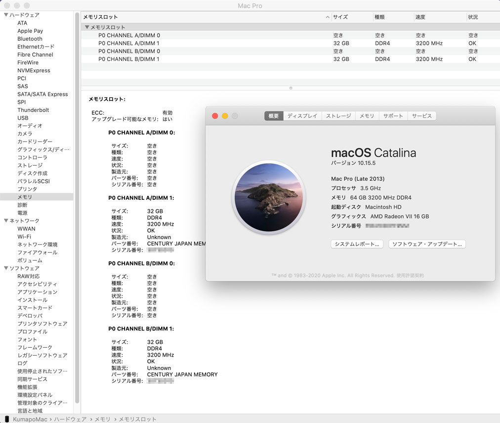 Macで採用されるプロセッサがAMD64アーキテクチャのインテルプロセッサではなくなるものの、Mac Pro 2019対抗の小型PC、唯一の難点だったメモリ容量を無事64GBにしました。DDR4 ECC Unbufferedメモリはなかなか入手困難で、残り3個で無事に1つ購入できたものの、購入後すぐに売り切れていました。
