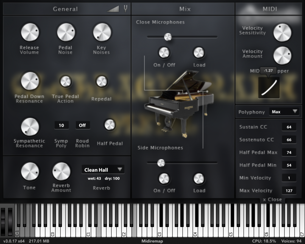 お気に入りのIvory IIのSTEINWAYピアノの透明感のあるピアノの音とはまた趣の異なるピアノで、特に高音部は歌うような美しい音色で聞いているだけでも浸りきれます。個人的にはこのピアノで「エステ荘の噴水」を奏でてみたかったのですが自分では弾けないのでSMFに頼って演奏させてみました。この曲は音符の数が激しく多いだけにハイレゾで演奏させるとそれなりのCPU負荷がかかります。