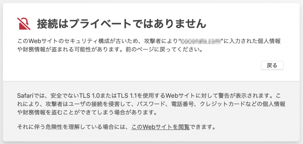 常時SSL(TLS)化の流れの中、WebサイトへアクセスしようとするとSafariで警告が返されることがあります。