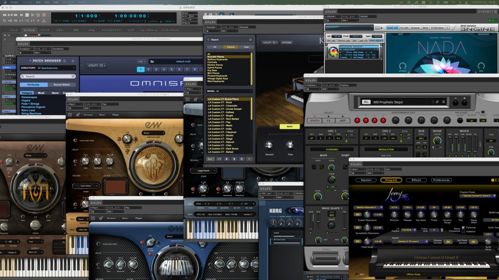 互換性の面で情報が乏しく不安もありしばらくはMac Pro Late 2013と並行運用するつもりでいました。特に心配だったのはAudio Units系のソフトウェアシンセサイザーですが、SynthogyのIvory IIを始めEastWestのRa、Goliath、Voics of Passions、KORG Collection 3、NADA、Omnisphere、Keyscape、EZKeyいずれも特に問題ないどころかMac Pro Late 2013に比べても非常に快適に動作したため、移行してMac Proを処分しても全く問題ないと判断しました。